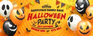 Happyface Family Rave are excited and THRILLED to be back with their SPOOKTACULAR HALLOWEEN PARTY FAMILY RAVE at Keele Uni on Sunday 30th October!!