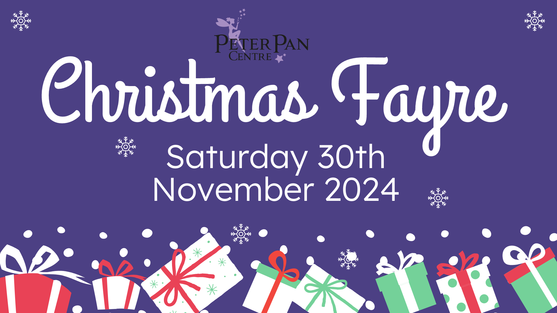 Save the date! The Peter Pan Christmas Fayre is back for 2024 on Saturday 30th November and we look forward to seeing you all for festive fun! Final details to be confirmed :-)